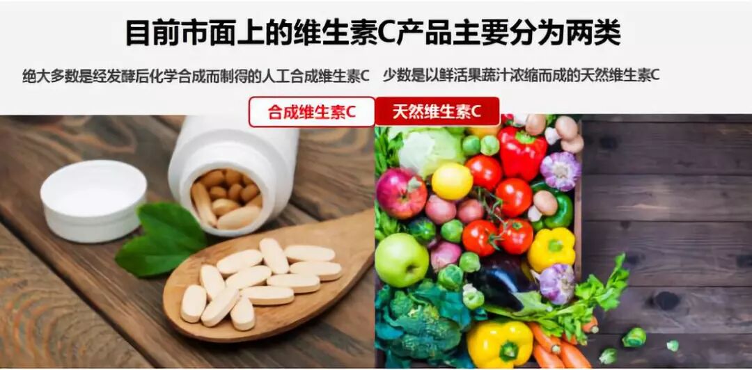 人体其实不能自己合成维生素C,大多需要从饮食中摄取。国人爱吃肉食,蔬果的摄入本来就少,而且更偏熟食,由于煎炸炒烧等烹饪,蔬菜中的维生素C流失较多。 维生素C,优选天然来源的 目前市面上维生素C产品主要分为两类:天然维生素C和合成维生素C。