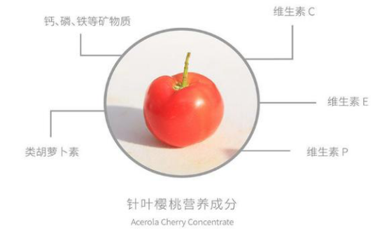 除了大量的VC,针叶樱桃中还含有总黄酮、类胡萝卜素、花青素、维生素E、钙、磷、铁等营养物质和活性成分,能够协助提升维生素C活性,稳定和加强维生素C的生理作用,使人体更好更安全吸收维生素C,提升人体免疫力。