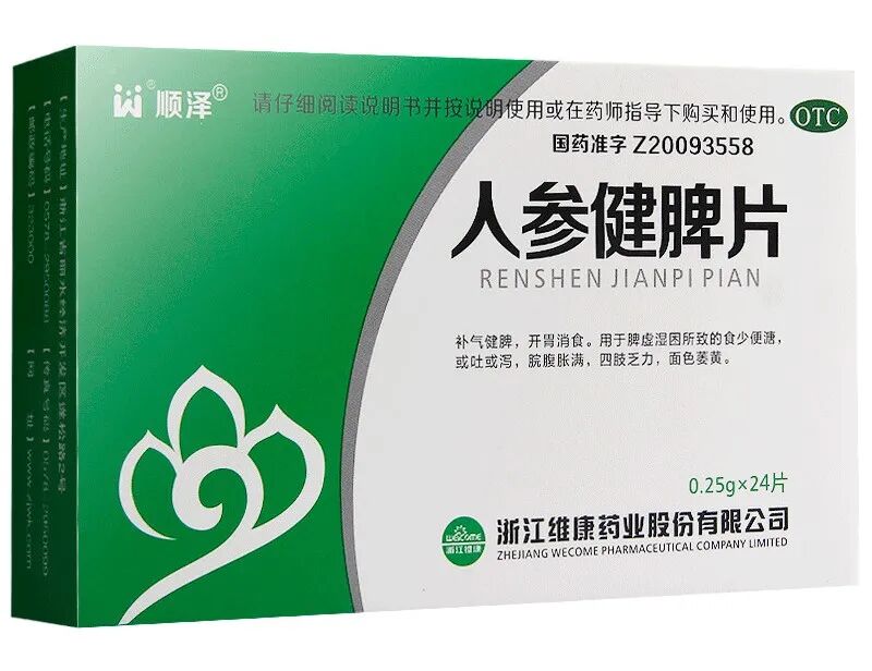 ◆人参健脾片:补气健脾,开胃消食。用于脾虚湿困所致的食少便溏,或吐或泻,脘腹胀满,四肢乏力,面色萎黄。