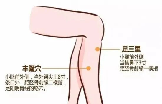 除了以上观察判断,经常睡觉流口水、口气重、上腹胀满、大便不成形、虚胖、神疲乏力,也是脾胃虚弱发出的求救信号。 学5招调理脾胃功能 1.点按足三里、丰隆穴 经常点按足三里可燥化脾湿,生发胃气;丰隆穴是治疗痰湿的要穴,经常点按可祛湿、化痰。