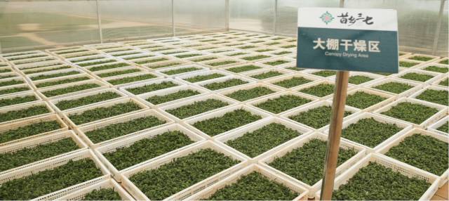 水洗后的三七花再进行低温烘烤,在苗乡专利太阳能干燥大棚干燥,缩短干燥时间的同时,效果可控,干燥更均匀、更彻底!